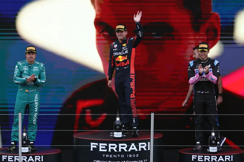 واحتل الإسباني فرناندو ألونسو، سائق فريق "أستون مارتن" المركز الثاني، بينما حصد بيير غاسلي المركز الثالث، ليصعد على منصة التتويج للمرة الأولى ممثلا لفريقه "ألبين".