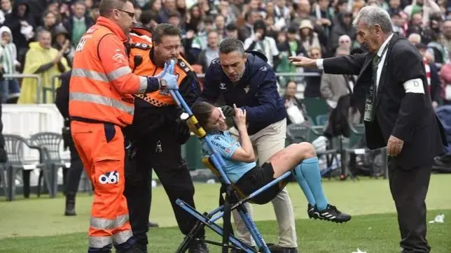 شهدت بداية مباراة ريال بيتيس وأثلتيك بيلباو، التي تُقام في إطار مباريات الجولة 26 من منافسات الدوري الإسباني، حادثًا مروعًا، حيث اصطدمت حكمة الخط المُساعدة غوادالوبي بوراس بكاميرا تلفزيونية خلال عودتها إلى مركز الملعب بعد احتساب هدف التقدم لريال بيتيس والذي سجله تشيمي آفيلا في الدقيقة 13.