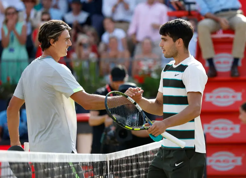 ألكاراز استخدم الإرسال والضربات الهوائية بفعالية، وفرض إيقاعه عبر نقاط حاسمة خلف الشبكة، وأكد استعداده لمواصلة الدفاع عن لقبه في بطولة ويمبلدون الشهر المقبل.
