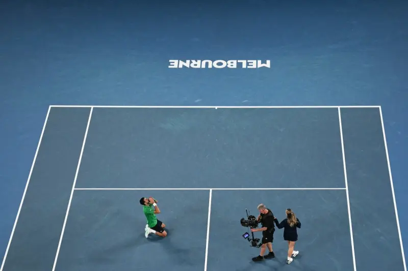 وقلب النجم الصربي تأخره مرتين إلى فوز مثير بنتيجة 3-6 و6-3 و4-6 و6-4 و6-4، في لقاء انتهى بعد الساعة 1:30 صباحا بتوقيت ملبورن، ليؤكد مجددا مكانته كـ"ملك ملبورن بارك"، بعدما سبق له التتويج باللقب 10 مرات.
