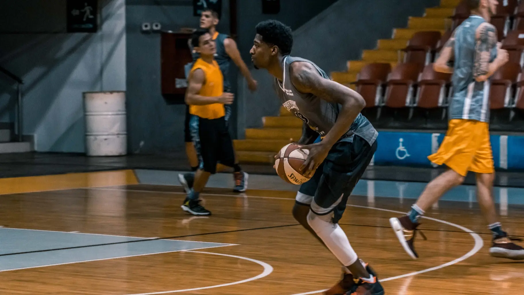 يجب على لاعبي كرة السلة أن ينططوا الكرة أثناء الجري بها داخل الملعب، ولذا إذا تحرك اللاعب خطوتين من دون أن ينطط الكرة، فيكون قد ارتكب مخالفة المشي بالكرة.