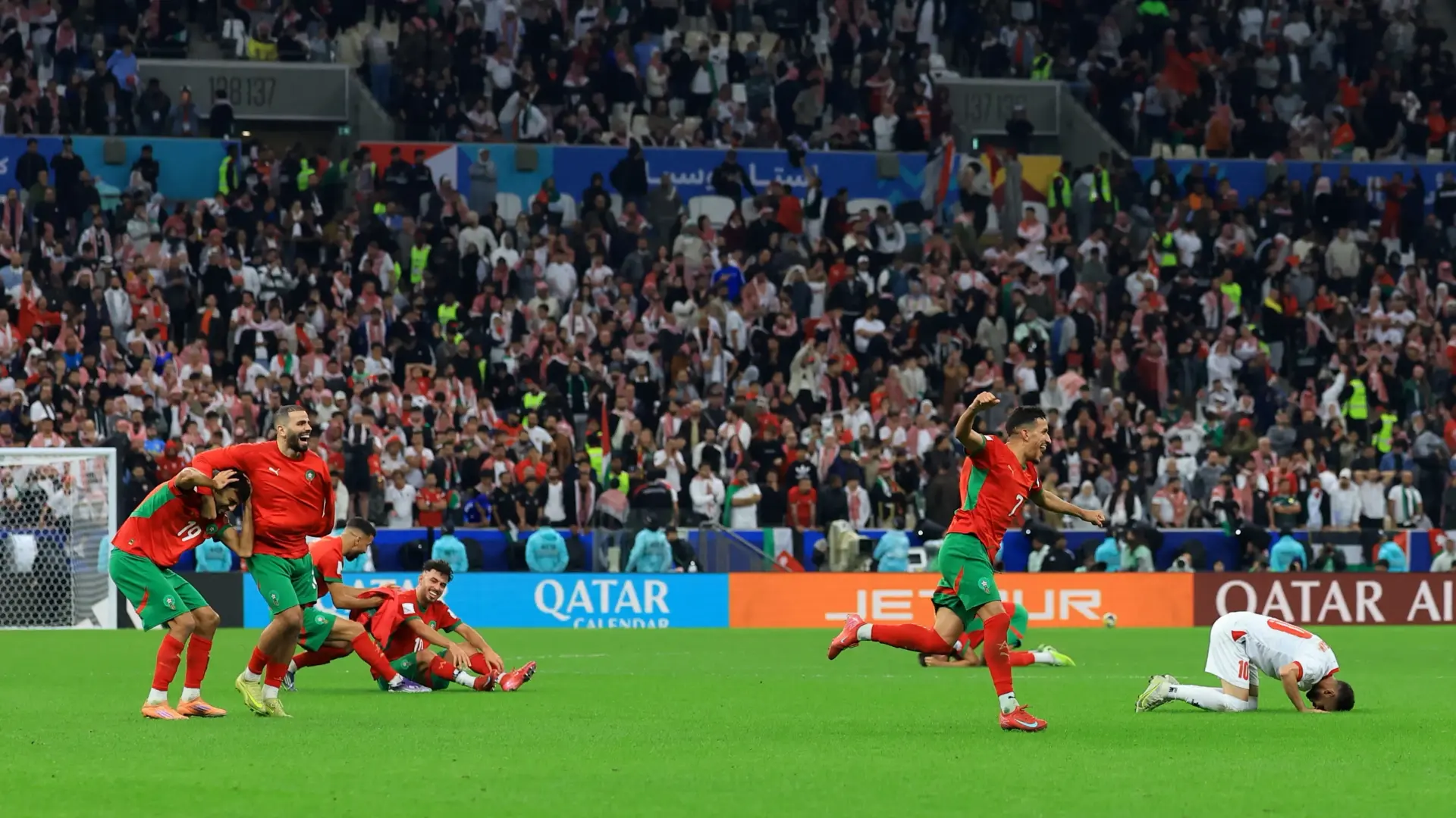 وسجل للمغرب أسامة طنان بتسديدة من نحو ستين مترا مطلع المباراة (4) والبديل عبد الرزاق حمدالله (88، 100) وللأردن علي علوان (48 و68 من ركلة جزاء).