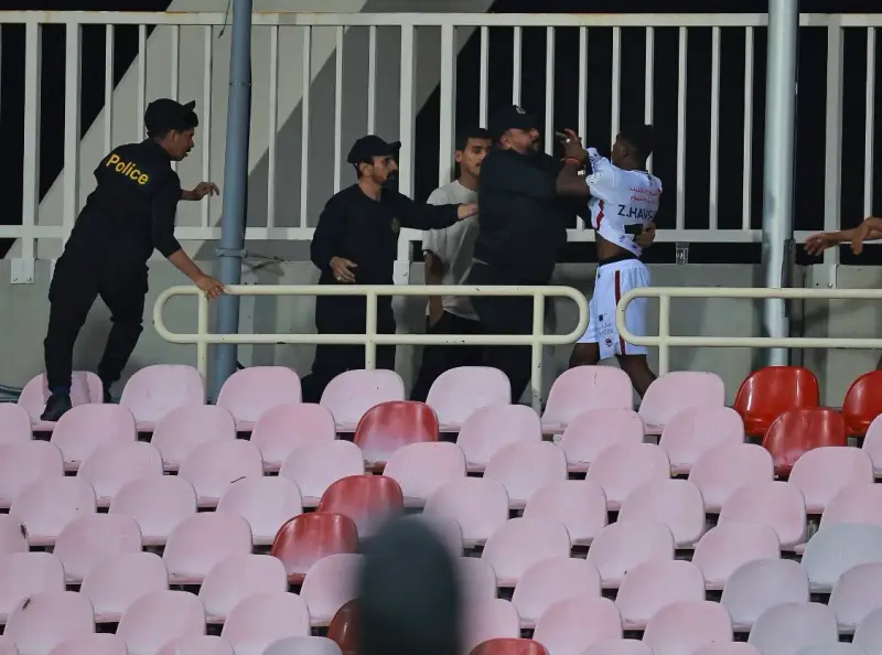 وأظهرت بعض الصور والمقاطع صعود اللاعب زكريا هوساوي بطريقة مسرعة إلى المدرجات، ليشتبك مع واحد من الجماهير الحاضرة والذي على ما يبدو وجه له انتقادا شرسا، خصوصا مع خسارة الفريق وتأزم وضعه في المركز 16.