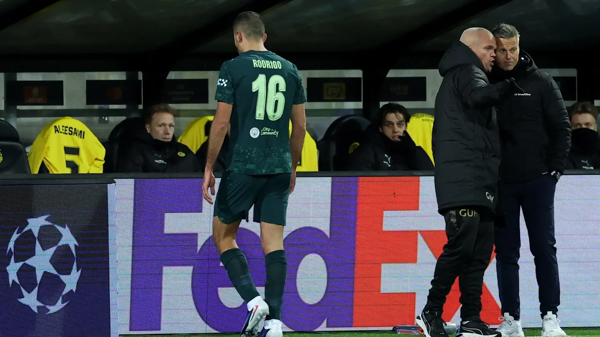 وعقب اللقاء، رفض المدرب بيب غوارديولا تحميل رودري مسؤولية ما حدث، مؤكدًا أن الفريق قاتل بـ10 لاعبين وأن عددًا من العناصر قدّم خطوة للأمام، لكنه اعترف في الوقت ذاته بأفضلية بودو/غليمت.