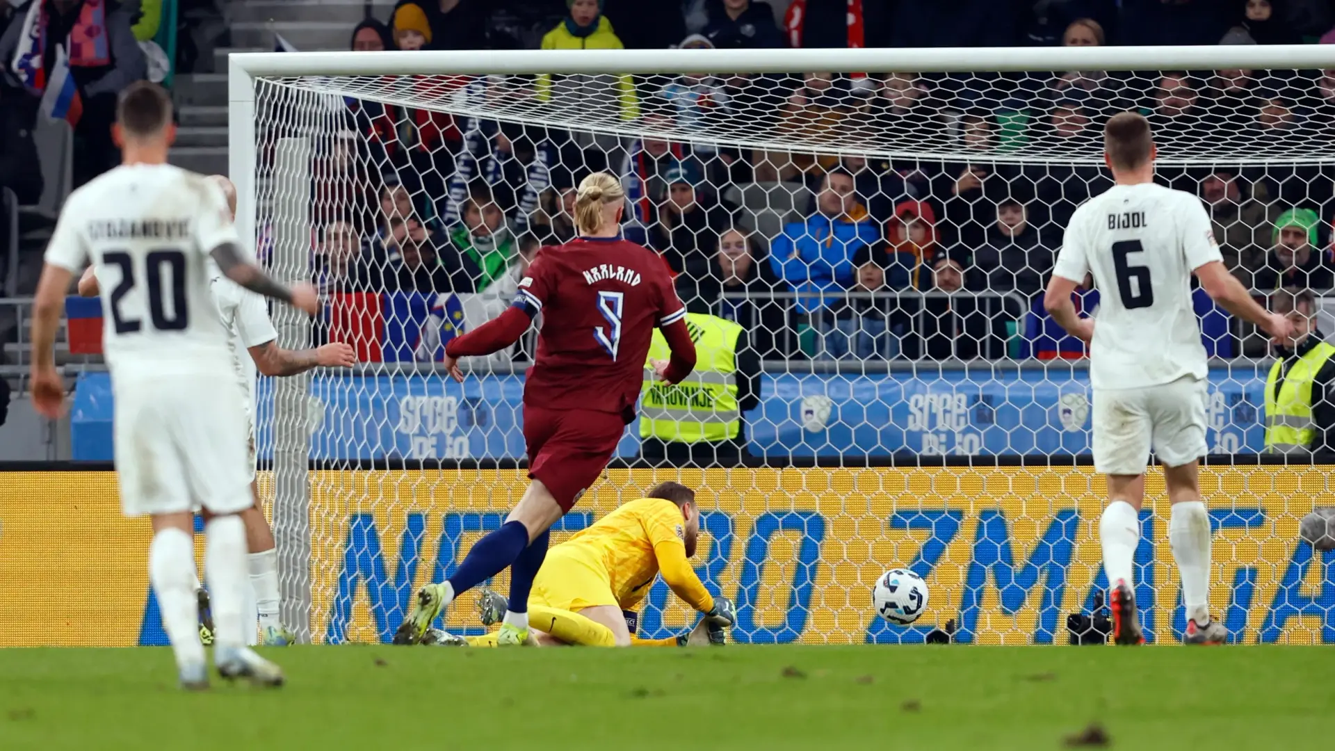 رفع هالاند رصيده إلى 7 أهداف ليتصدر قائمة هدافي دوري الأمم في موسمه الرابع، وبات رصيده 38 هدفا في 39 مباراة دولية بقميص منتخب بلاده.