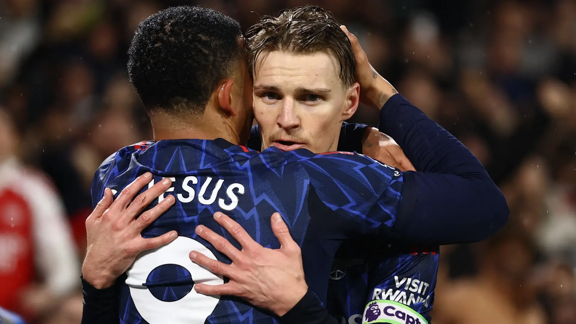 وتعرض أرسنال لضربة قبل صافرة البداية بإصابة بوكايو ساكا خلال الاحماء، ليحل نوني مادويكي بدلًا منه في الخط الأمامي بجانب السويدي فيكتور يوكيريس والبلجيكي لياندرو تروسار والألماني كاي هافيرتز، ومن خلفهم ديكلان رايس الذي بات عن 27 عاما و17 يوما خامس أصغر لاعب يخوض 300 مباراة في الدوري الممتاز.