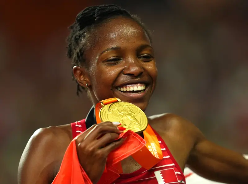 فازت البحرينية ذات الأصول الكينية، وينفريد يافي، بالميدالية الذهبية لسباق 3000 متر موانع للسيدات.
