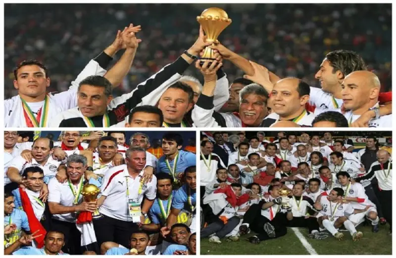 أحرزت مصر ثلاثية متتالية تاريخية في كأس أمم إفريقيا لكرة القدم بين 2006 و2010، بقيادة "المعلّم" حسن شحاتة، وضعتها على قمة القارة بدون منازع مع 7 ألقاب.