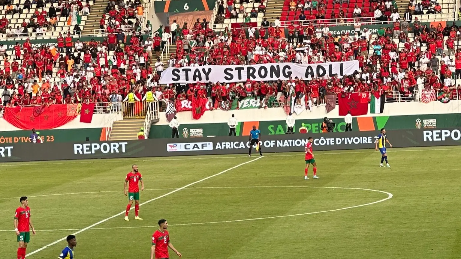 قدّمت الجماهير المغربية الحاضرة في ملعب مدينة "سان بيدرو" في كوت ديفوار، رسالة دعم إلى لاعب الفريق أمين عدلي، الذي شارك مع "أسود الأطلس" أمام تنزانيا، في مُستهل مشوار الفريق بالمجموعة السادسة من بطولة كأس أمم إفريقيا 2023 الجارية حاليا.