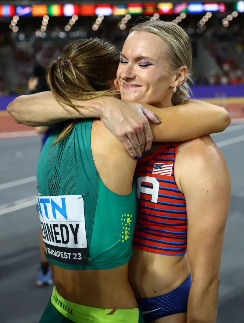 قررت الأميركية كاتي مون والأسترالية نينيا كينيدي تقاسم الميدالية الذهبية عقب نهائي مثير لمنافسات القفز بالزانة للسيدات.