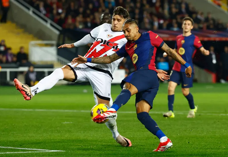 لم يكتفِ برشلونة بذلك، ففي الدقيقة الـ23، كاد رافينيا أن يفتتح التسجيل عبر تسديدة يسارية قوية، إلا أن حارس رايو فايكانو تصدى لها ببراعة في وسط المرمى، بعد تمريرة متقنة من بيدري.
