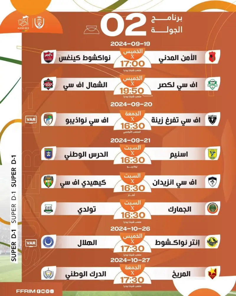 البطولة: الدوري الموريتاني - الجولة الثانية