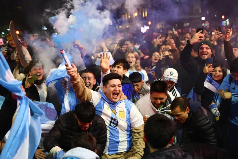 وأقيمت الاحتفالات حول النصب التذكاري الأيقوني "أوبيليسكبين"، بين المشجعين المبتهجين الذين لفّ العديد منهم العلم الأرجنتيني حول جسده، وذلك في ساعات الصباح الأولى على الرغم من درجات الحرارة المنخفضة.