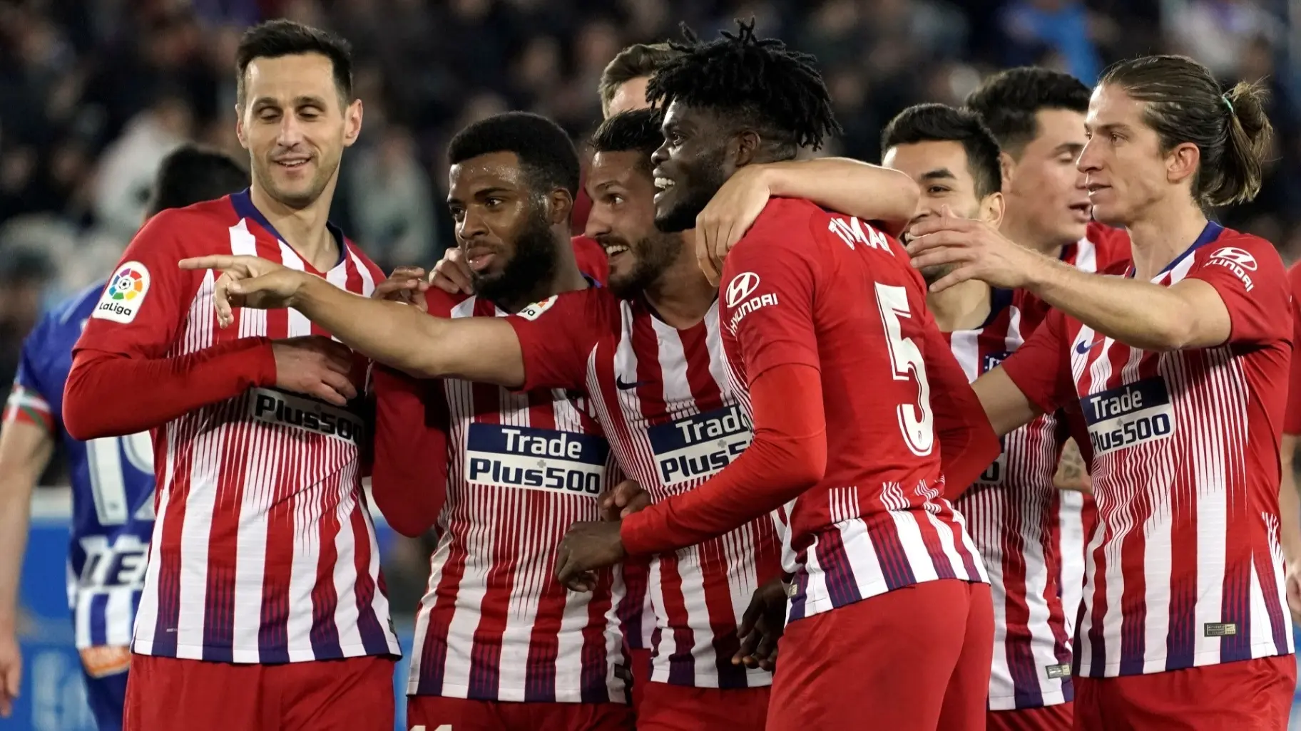 الوسط: جوليانو سيميوني - كوكي - رودريغو ميندوزا - أليكس باينا