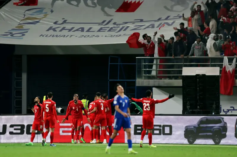 وسجل محمد مرهون الهدف الوحيد للبحرين في الدقيقة 76 من المباراة التي أقيمت وسط حضور 60122 متفرجا بمدرجات ملعب جابر الأحمد الدولي بالعاصمة الكويت، والذي سيستضيف المباراة النهائية.