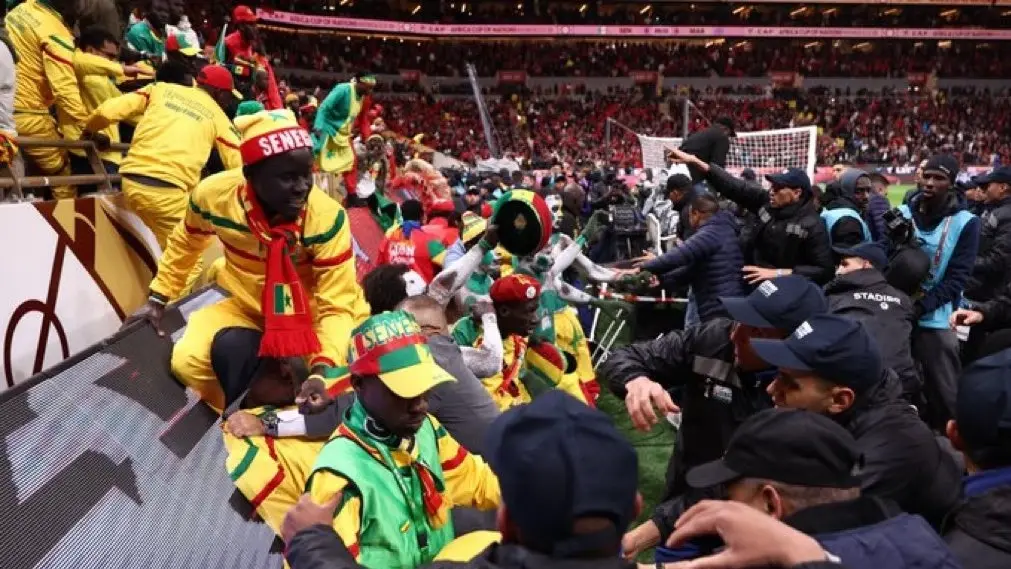 ودفع هذا القرار مئات المشجعين لمحاولة اقتحام أرضية الميدان، ما أدى لتعطيل اللعب لمدة ناهزت 15 دقيقة، واستمرت الفوضى حتى أثناء استعداد اللاعب إبراهيم دياز لتسديد ضربة الجزاء التي أهدرها في النهاية.