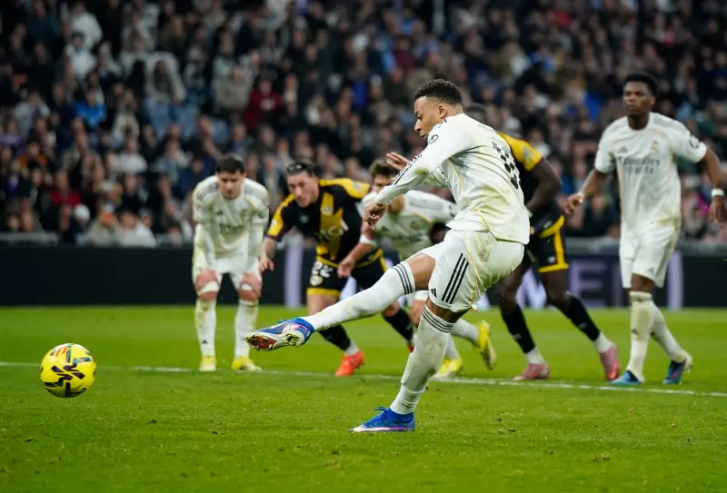 من جديد، واصل النجم الفرنسي، كيليان مبابي، تسجيل الأهداف عن طريق هدف من ركلة جزاء في الدقيقة الـ10 من الوقت بدل الضائع ليقود ريال مدريد لفوز بشق الأنفس 2-1 على رايو فايكانو اليوم الأحد ليظل على بعد نقطة واحدة من برشلونة متصدر دوري الدرجة الأولى الإسباني.