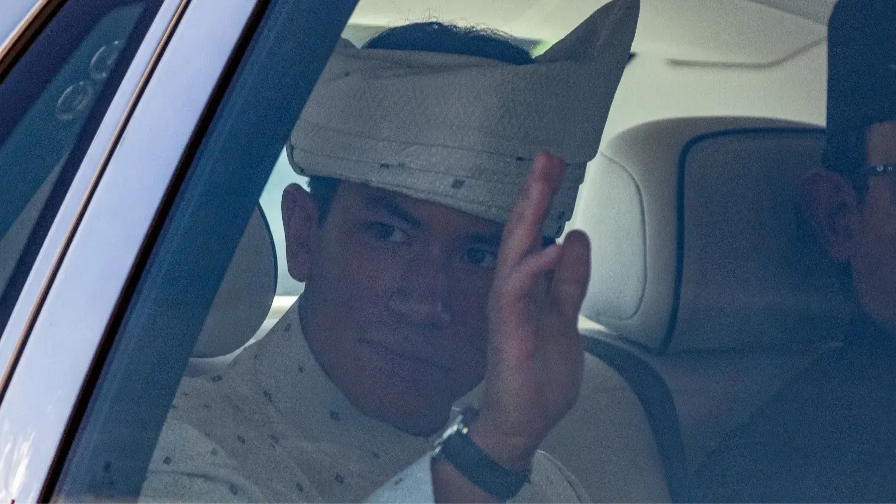 بعد ذلك، جلس العروسان في المقعد الخلفيّ لسيارة رولز رويس مكشوفة، لتحية سكان العاصمة التي تزيّن صورتهما شوارعها وواجهات مبانيها منذ أيام.