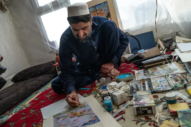 يقول مبتسما "حين أرسم، أعود 500 عام إلى الوراء، إلى شوارع هرات في تلك الحقبة"، عندما كان السلاطين التيموريون يدعمون الفنانين مثل بهزاد أو الشاعر والمتصوف الديني عبد الرحمن الجامي.