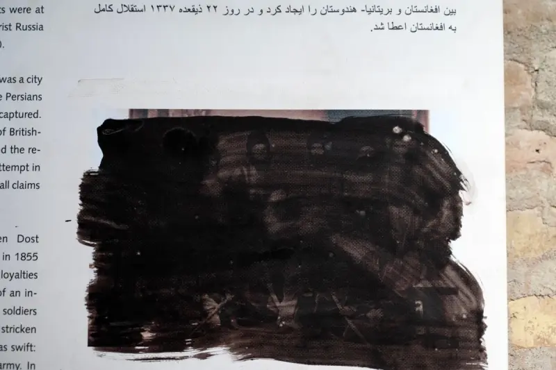 وفي جناح من القلعة يعرض تاريخ المدينة، عمدت شرطة الأمر بالمعروف والنهي عن المنكر إلى دهن الوجوه باللون الأسود على اللوحات التفسيرية.
