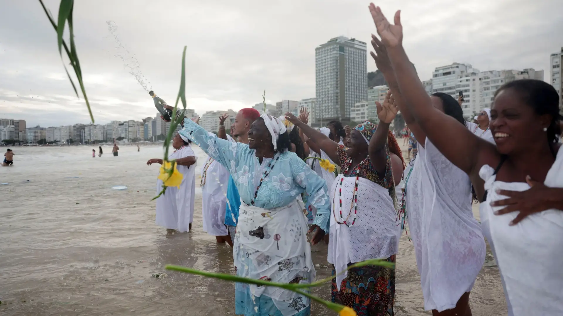 خلال ليلة رأس السنة في ريو، يذهب معظم المحتفلين إلى الشاطئ مرتدين ملابس بيضاء، في تقليد موروث من معتقدات إفريقية برازيلية.