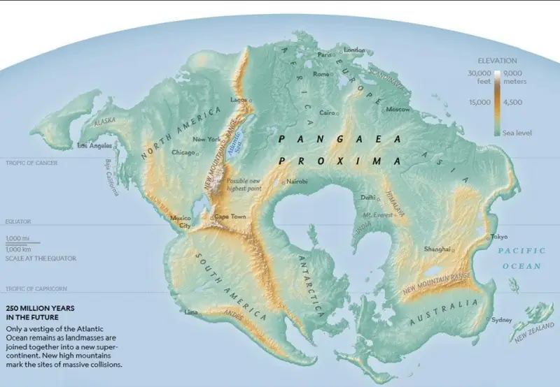 لا تزال تلك القارات في حالة حركة مستمرة، فهناك وادٍ متصدع عظيم سيقسم قارة إفريقيا في المستقبل البعيد، كما ستصبح كاليفورنيا جزيرة منفصلة عن كتلة أميركا الشمالية.