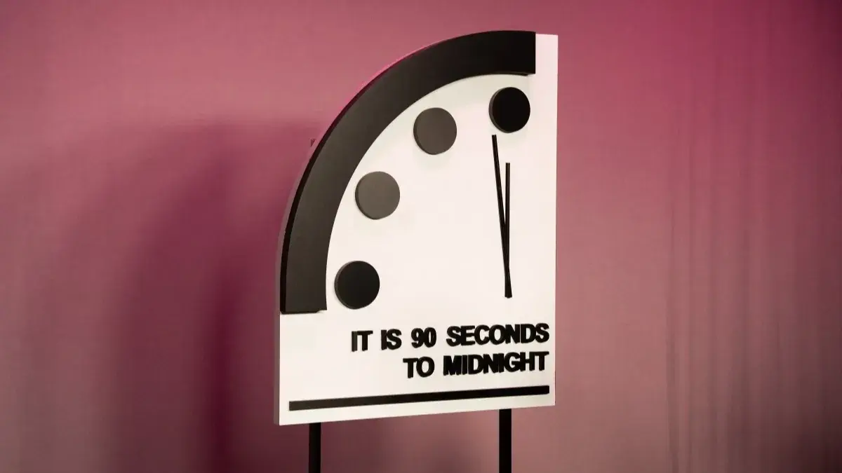 وقال علماء الذرة إنهم حرّكوا عقارب ساعة يوم القيامة الرمزية، لتصبح عند 90 ثانية فقط قبل منتصف الليل، الذي يؤشر وصولها إليه نشوب حرب نووية تُنفي البشرية.