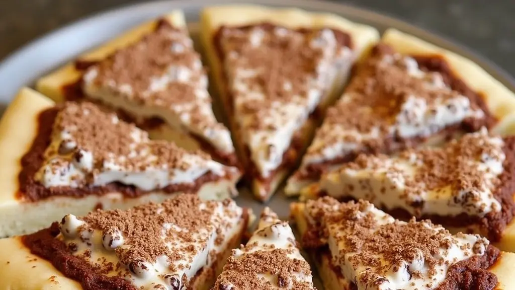 ويقوم الطبق على دمج قاعدة البيتزا النابوليتانية التقليدية مع مكونات حلوى Tiramisu الشهيرة.