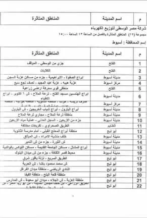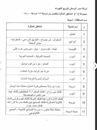 جدول مواعيد قطع الكهرباء في أسيوط 2024