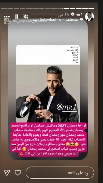 وشارك الفنان المصري متابعيه عبر حسابه الرسمي على خاصية "ستوري"، مجموعة مقاطع فيديو ومنشورات لمجموعة من المواطنين الذين يؤكدون فيها أنّ محمد رمضان هو "نمبر وان" والأعلى مشاهدة.