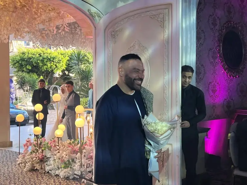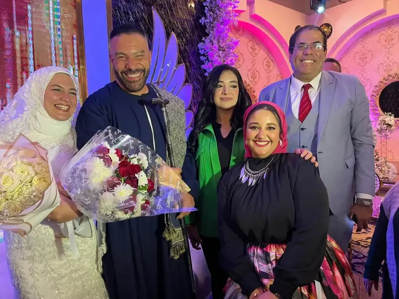 احتفل الفنان والمرشد السياحي محمد خميس، بزفافه، اليوم الجمعة، في محافظة الإسكندرية، وظهر مرتدياً جلبابه الصعيدي الشهير، أثناء دخول قاعة حفل الزفاف، وهو ممسك بباقة من الورود قبل تقديمها للعروس، ونالت هذه الإطلالة إعجاب المتابعين وتفاعل معها رواد منصات التواصل الاجتماعي.