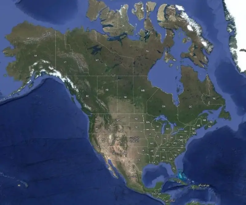 خريطة قارة أميركا الشمالية