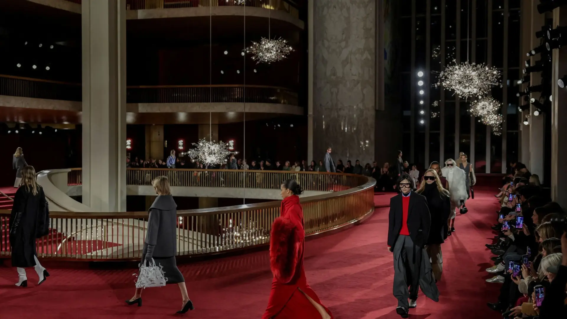 وتهادت عارضات الأزياء، ومن بينهن أليكس كونساني وكريستي تورلينغتون، على درج أوبرا متروبوليتان ببدلات، وفساتين مطرزة بالزهور، وفساتين من الكشمير مستوحاة من فكرة "الأناقة العملية في نيويورك"، كما قال مؤسس العلامة مايكل كورس.