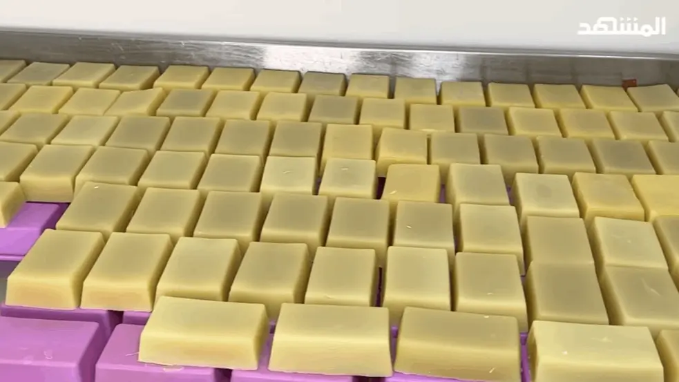 ويدخل الحليب بعد جمعه إلى مختبر المصنع، ويمزج مع خليط خاص من الزيوت وزبدة الشيا، ويكفي لتر الحليب الواحد لصناعة 30 قطعة من الصابون.