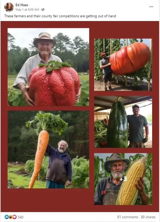 وجاء في التعليقات المرافقة أنّ هذه الصورة تُظهر أكبر ثمرة فراولة في العالم.