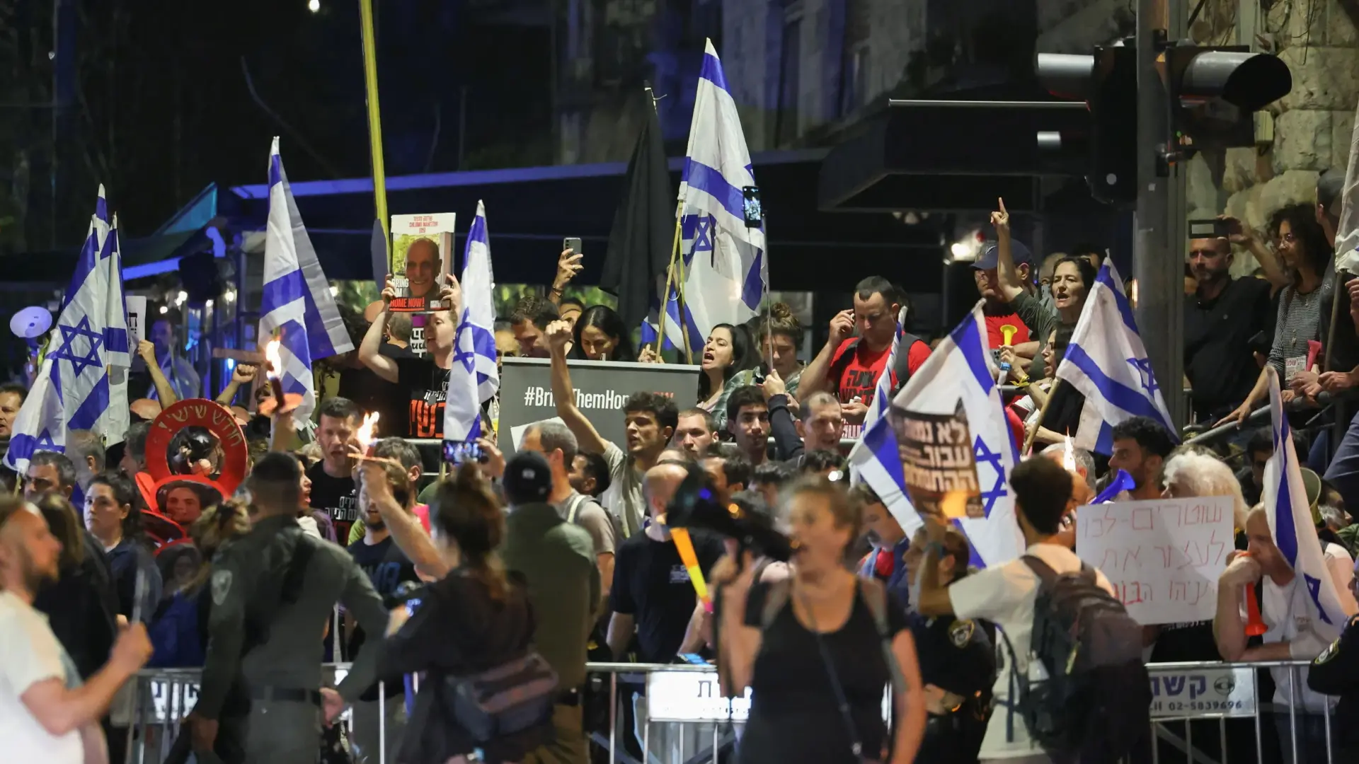 ورفع المحتجون لافتات على غرار "الصفقة الآن"، و"أنقذ إسرائيل من نفسك"، بالإشارة إلى نتانياهو.