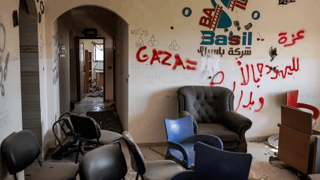 "غزة لليهود"، هكذا تقول عبارة باللغة العربية على جدار داخل مبنى ممزق.