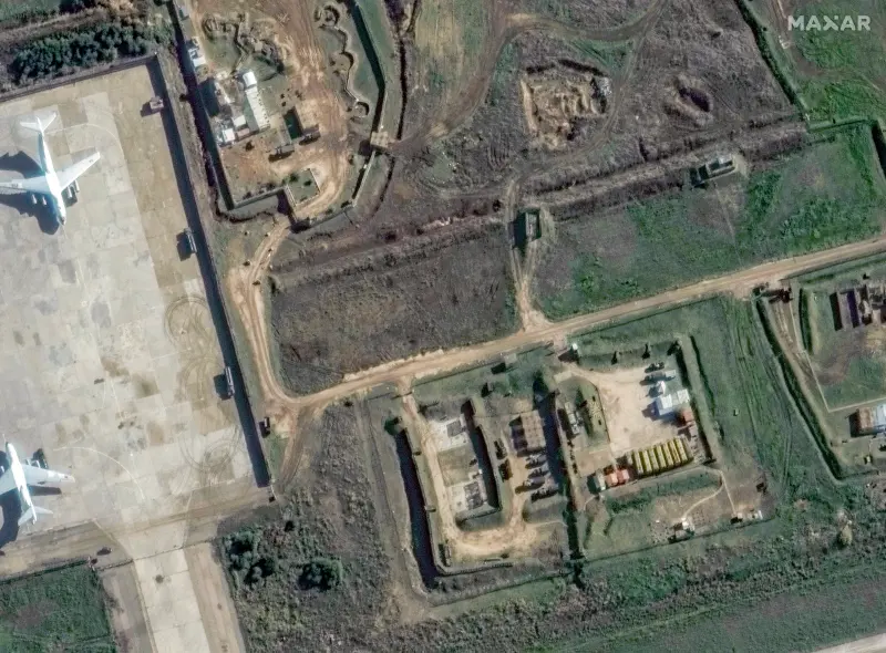 وقالت شركة "ماكسار" في بيان لها: "رُصدت طائرتا نقل ثقيل في المطار، مع بدء تفكيك مروحية مقاتلة من طراز كيه.أيه-52 على ما يبدو، بالإضافة إلى تحضير أجزاء من وحدة الدفاع الجوي إس-400 للنقل من موقعها السابق في القاعدة الجوية".