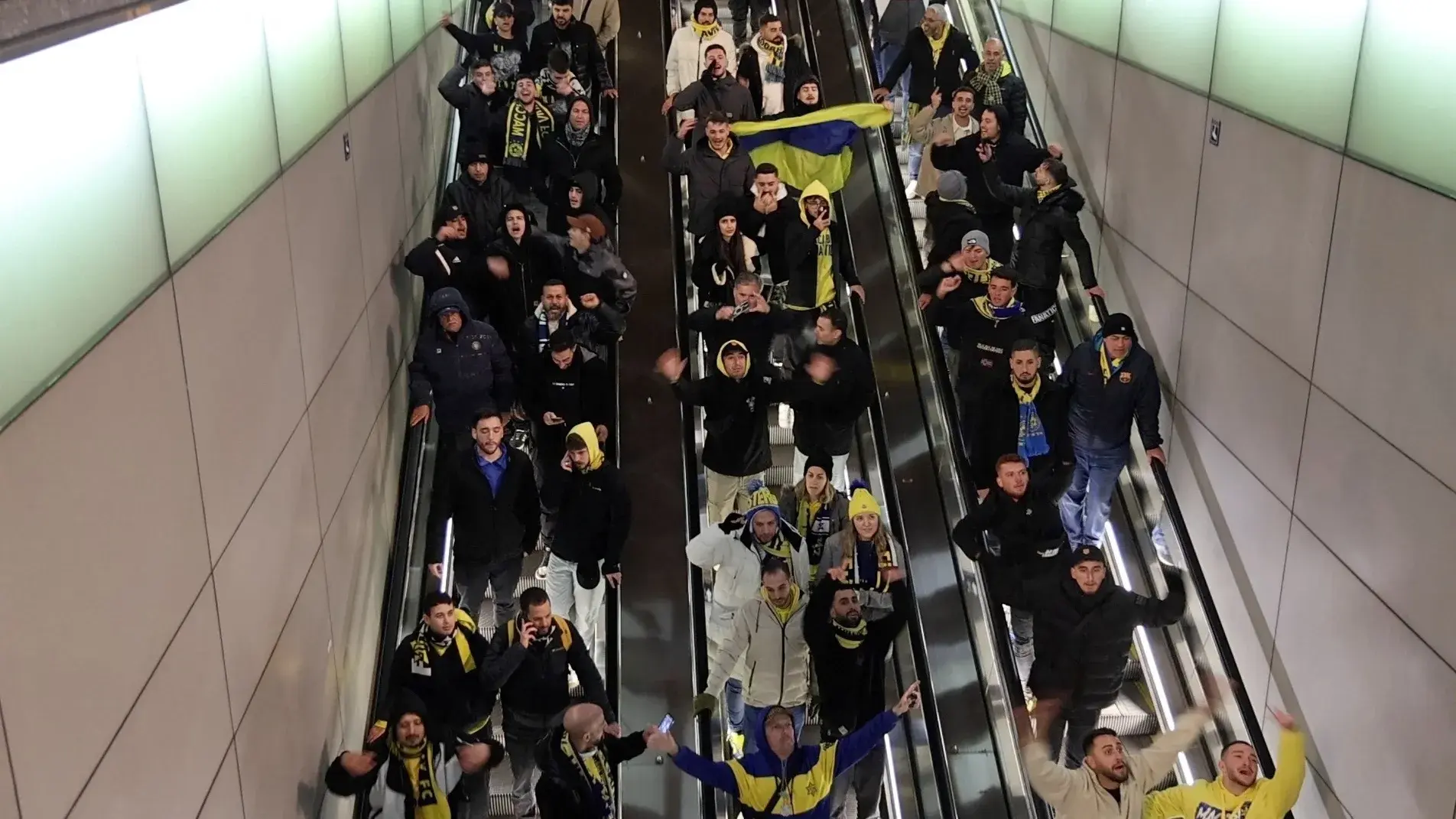 وبعد ظهر الخميس، تجمع حوالى 100 مشجع للنادي الإسرائيلي في ساحة دام، محاطين بقوة كبيرة من الشرطة، قبل التوجه إلى ملعب يوهان كرويف في جنوب غرب العاصمة الهولندية.