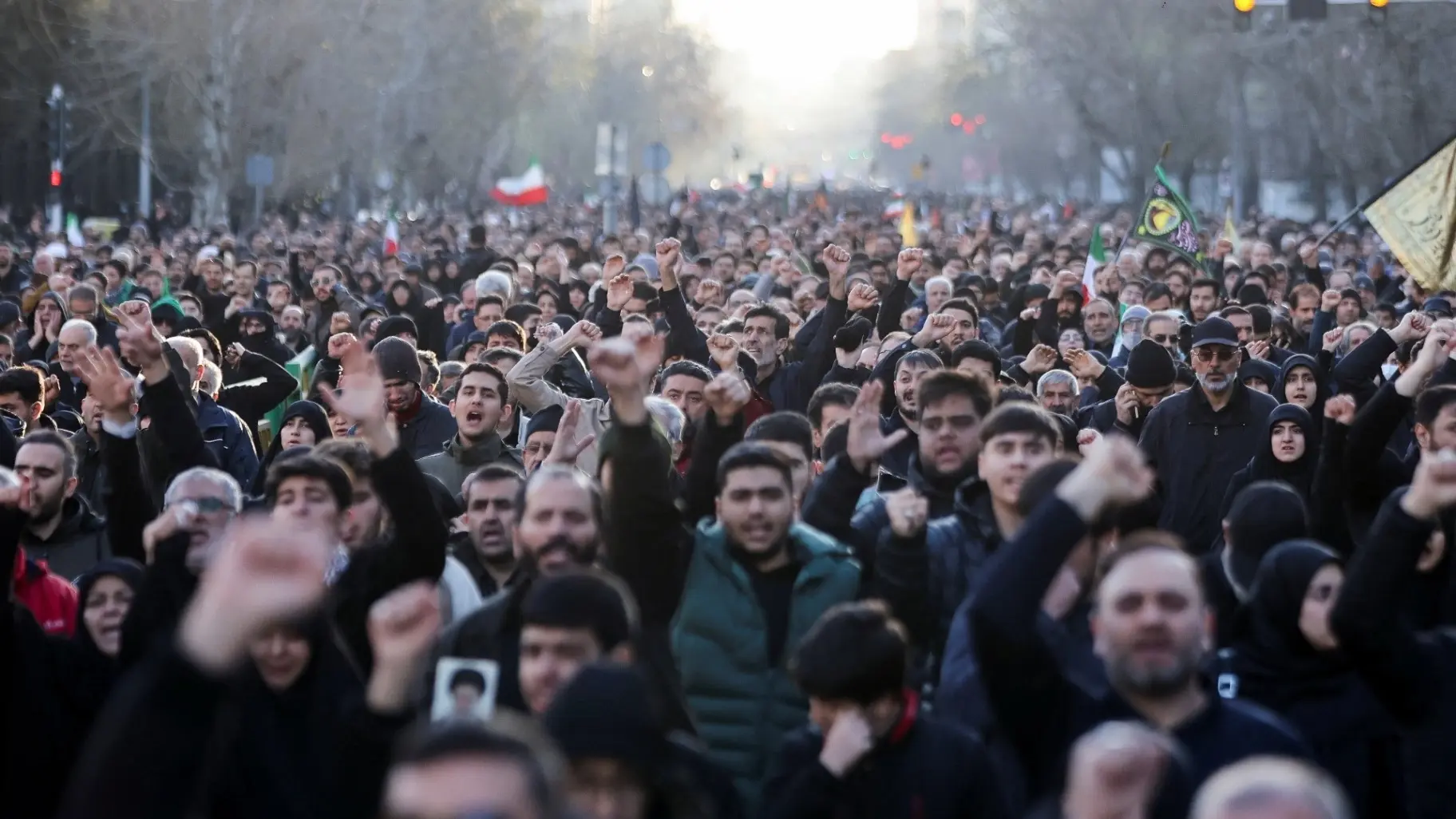 وهتف المتظاهرون الذين كانوا يرتدون بمعظمهم ملابس سوداء "الموت لأميركا" و"الموت لإسرائيل" وهم يرفعون صور خامنئي وأعلاما إيرانية.