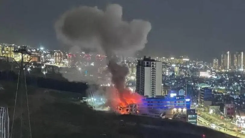 وأظهرت لقطات حية تداولتها منافذ محلية مبنى تشتعل فيه النيران، بينما أظهر مقطع فيديو آخر ما يبدو أنها دفاعات جوية تشتبك مع طائرات مسيرة في الأجواء.