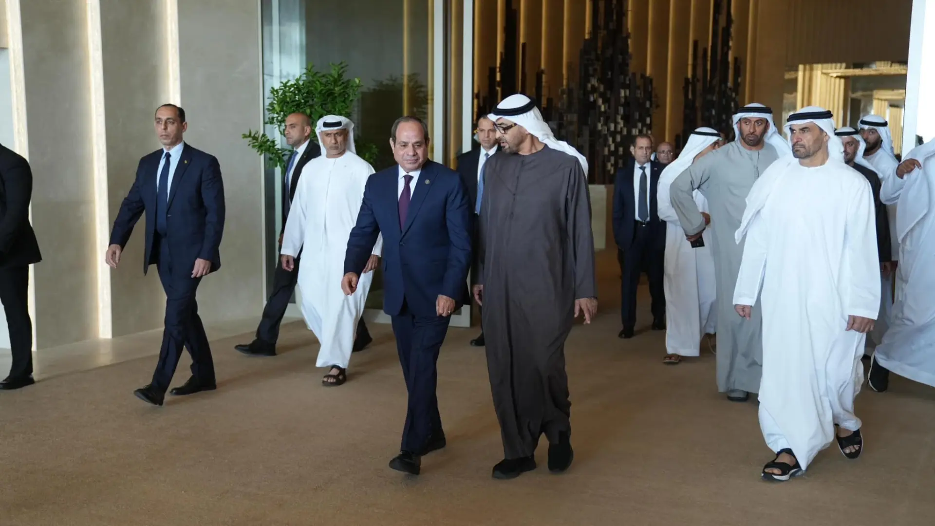 رحب الرئيسان الإماراتي محمد بن زايد آل نهيان والمصري عبد الفتاح السيسي بالإعلان عن وقف إطلاق النار في قطاع غزة وتبادل الأسرى والمحتجزين.