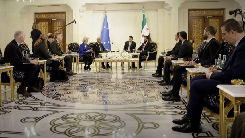 أعلنت رئيسة المفوضية الأوروبية أورسولا فون دير لاين الجمعة، أن أوروبا ستفعل "ما بوسعها" من أجل دعم إعادة إعمار سوريا، وذلك بعد لقائها الرئيس السوري أحمد الشرع في دمشق.