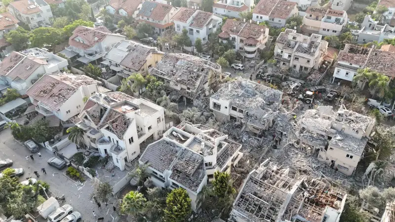 وبحسب صحيفة "تايمز أوف إسرائيل"، تُظهر الصور الملتقطة من الجو مباني سكنية متضررة وسيارات محترقة وشوارع خالية إلا من فرق الإنقاذ والطوارئ التي هرعت إلى الموقع فور سقوط الصواريخ.