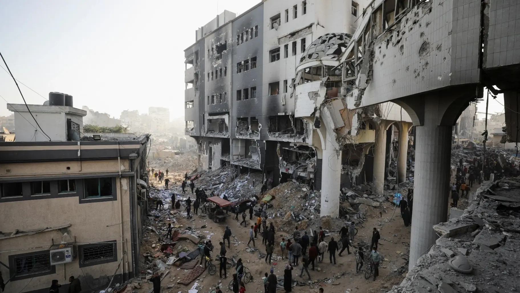 في مجمع الشفاء الطبي، يتوقف بعض المارة ليشاهدوا حجم الدمار، مثل المبنيين اللذين كانا متّصلين بممرّ ولم يبق منهما إلا قطعة من الإسمنت وبعض النوافذ المحطّمة، فيما يبحث آخرون بين الأنقاض ويلتقطون ما يمكن إنقاذه.تركت عمليات القصف المتواصلة التي يشنّها الجيش الإسرائيلي في قطاع غزة منذ بدء الحرب التي اندلعت قبل 6 أشهر تقريبا، مشهدا مروعا في القطاع الفلسطيني الذي أصبح على شفير المجاعة.