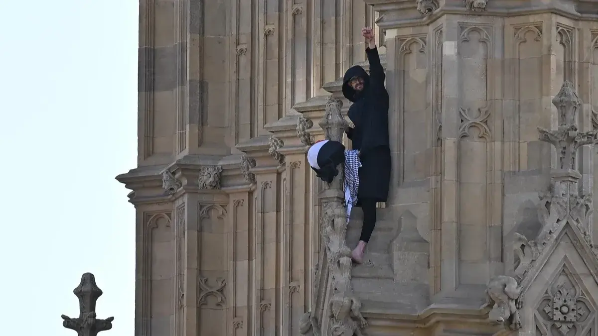 مثل رجل أمام المحكمة الاثنين بعد أن تسلق برج ساعة "بيغ بن" في قصر وستمنستر في لندن في وقت مبكر من صباح السبت وبقي هناك طوال اليوم ضمن احتجاج مؤيد للفلسطينيين.
