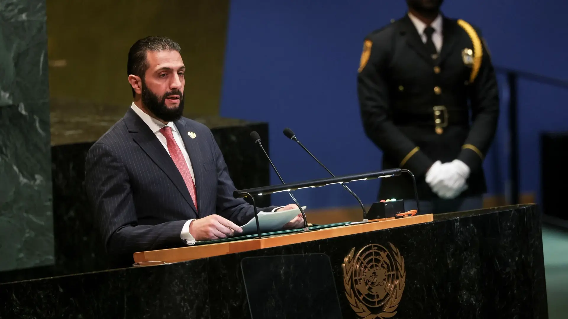 وأضاف الشرع خلال كلمته أمام الجمعية العامة للأمم المتحدة أن "الشعب السوري ثار من أجل كرامته فقوبل بالتعذيب والتنكيل"، لافتا إلى أن "النظام السابق مزق سوريا ونشر الفتنة الطائفية والمخدرات".