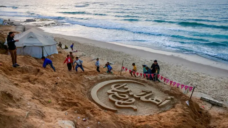 تزينت خيام النازحين في قطاع غزة بفوانيس رمضان المضيئة وحبال الزينة الملونة الممتدة بين آلاف الخيام وأنقاض المنازل وهم يستقبلون الأربعاء شهر رمضان بعد عامين من الحرب الإسرائيلية.