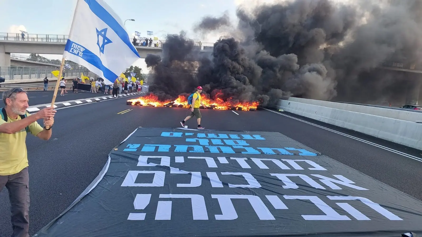 وافتتحت الاحتجاجات بعلم عملاق يحوي صور الأسرى، رُفع أمام مبنى السفارة الأميركية في تل أبيب، ما أدى إلى إغلاق طريق أيالون الرئيسي خلال ساعة الذروة قبل إعادة فتحه لاحقًا.
