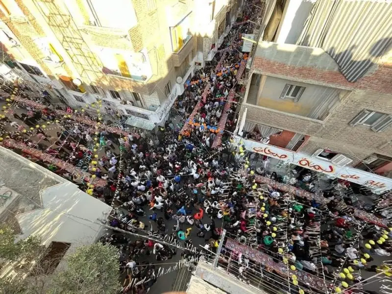 وحرص الآلاف على نشر الصور والفيديوهات المبهجة لشوارع المطرية التي تزينت بالفوانيس الكبيرة وسط حالة من الفرحة لسكان المنطقة الشعبية.